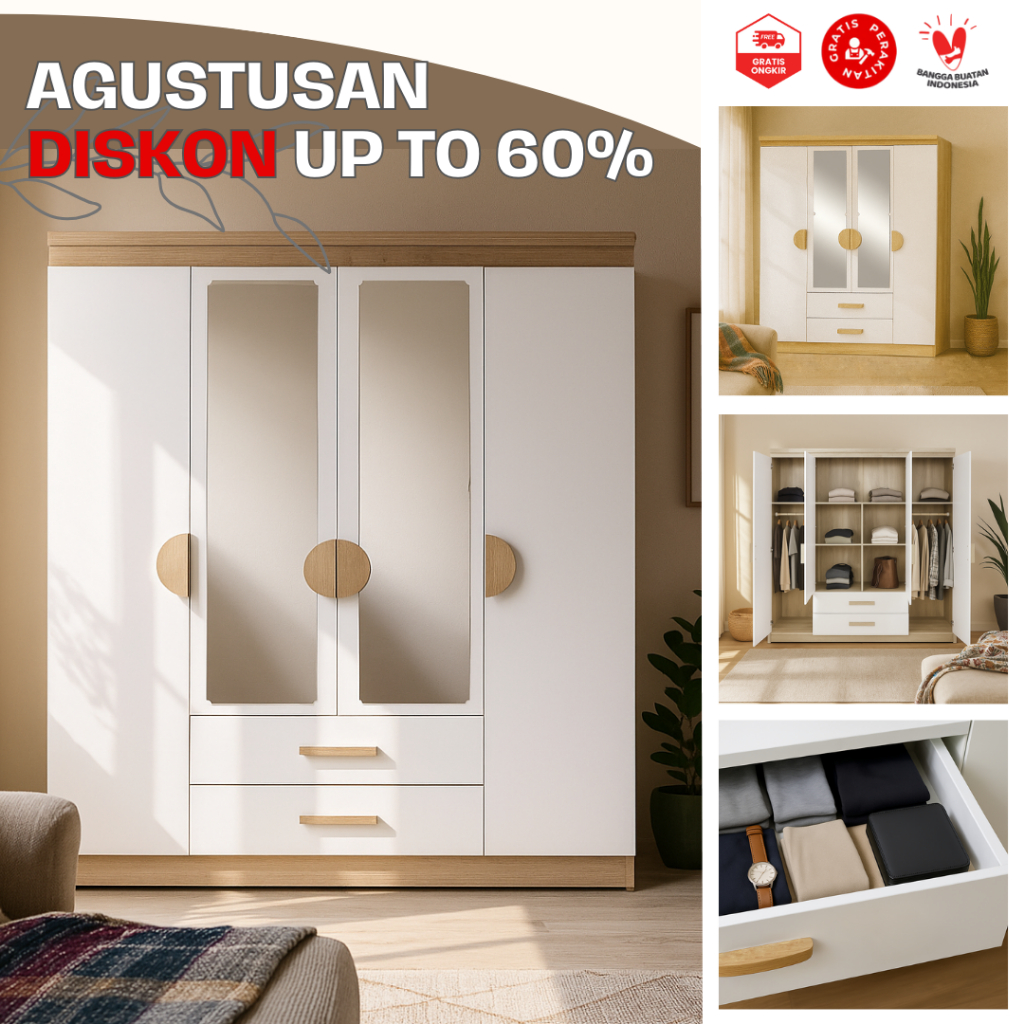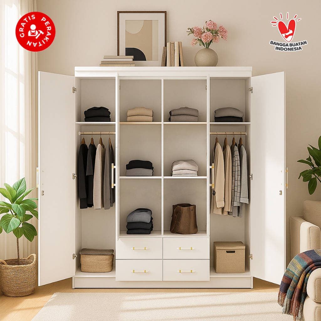 [Mall] HARVEST FURNITURE LEMARI PAKAIAN BAJU 4 PINTU MURAH MODERN MINIMALIS