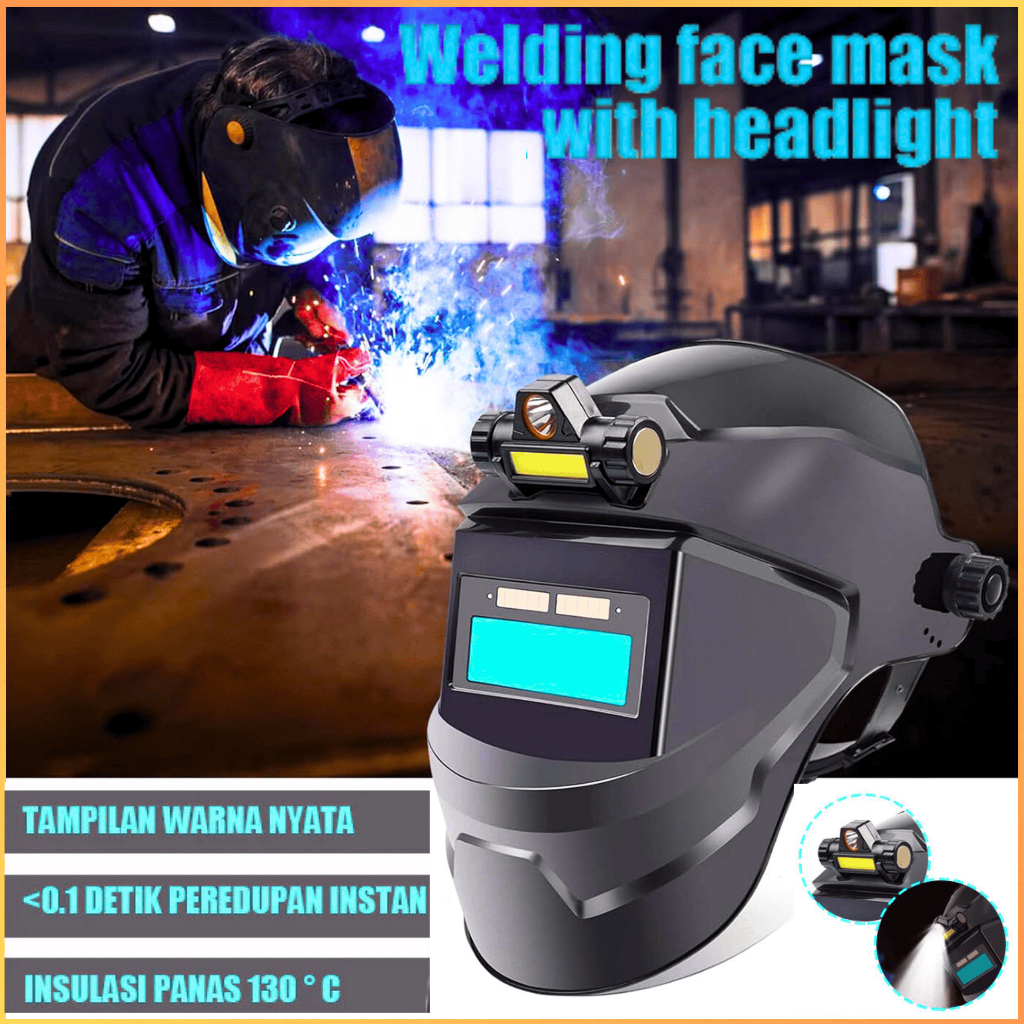 TAFFGUARD HELM LAS LISTRIK OTOMATIS AUTO DARKENING GELAP TERANG ADA LAMPU FULL FACE ORIGINAL