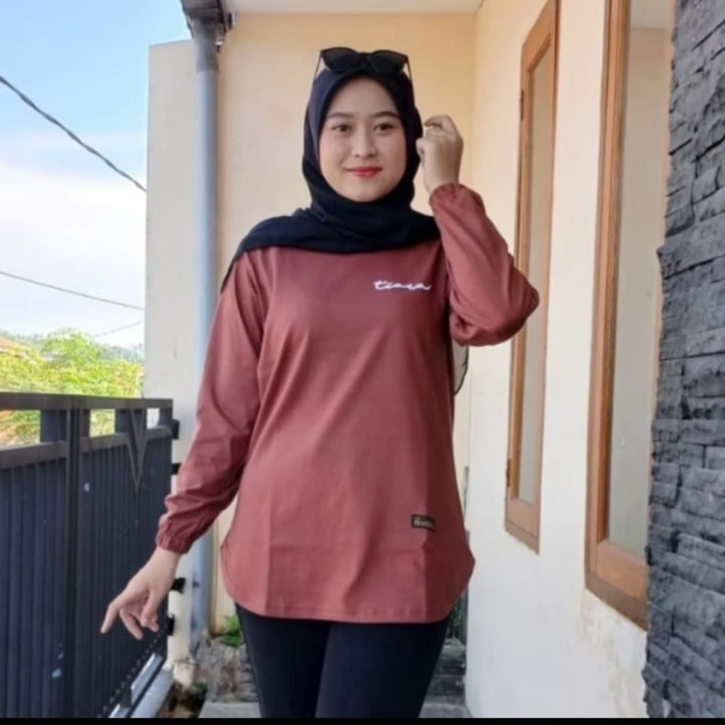 Atasan Wanita Lengan Panjang Kaos Polos Body Oval Bahan Katun 20s