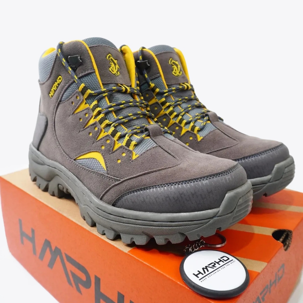 HMRHD SEPATU PRIA SAFETY BOOTS MAKO HIGH GREY YELLOW UJUNG BESI