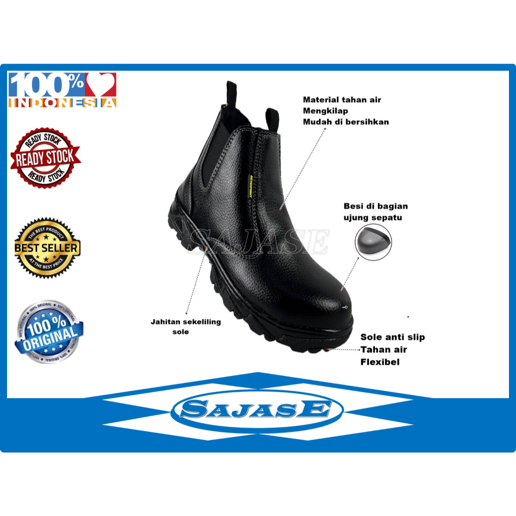 SAFETY SHOES PRIA UJUNG BESI SEPATU SAFETY BOOTS MODEL SLIP ON SEPATU SAFETY PROYEK