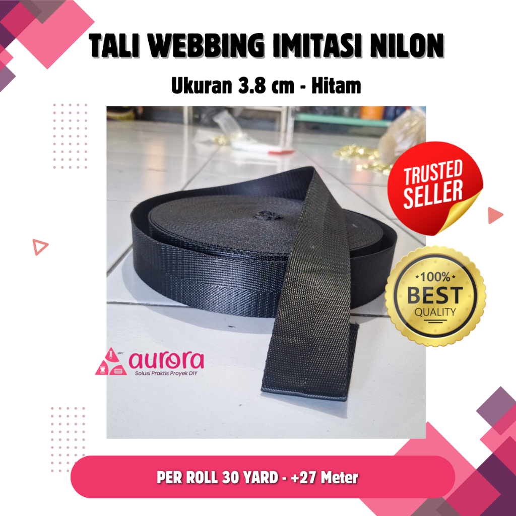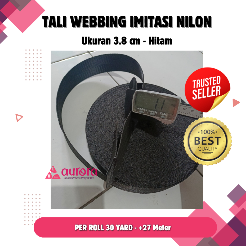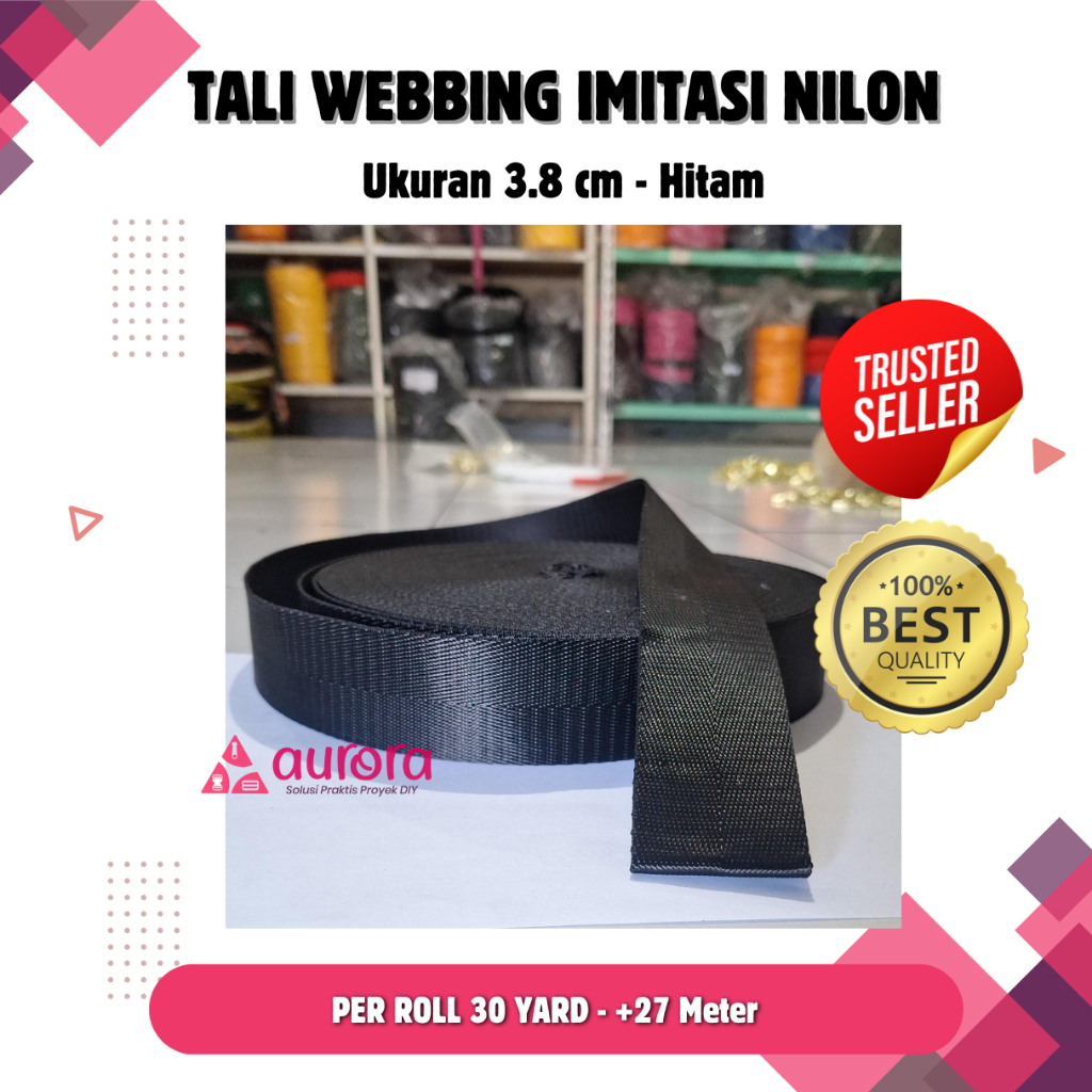 (PER ROLL) TALI WEBBING IMITASI NILON UKURAN 3,8 CM HITAM - 30 YARD MENGKILAP