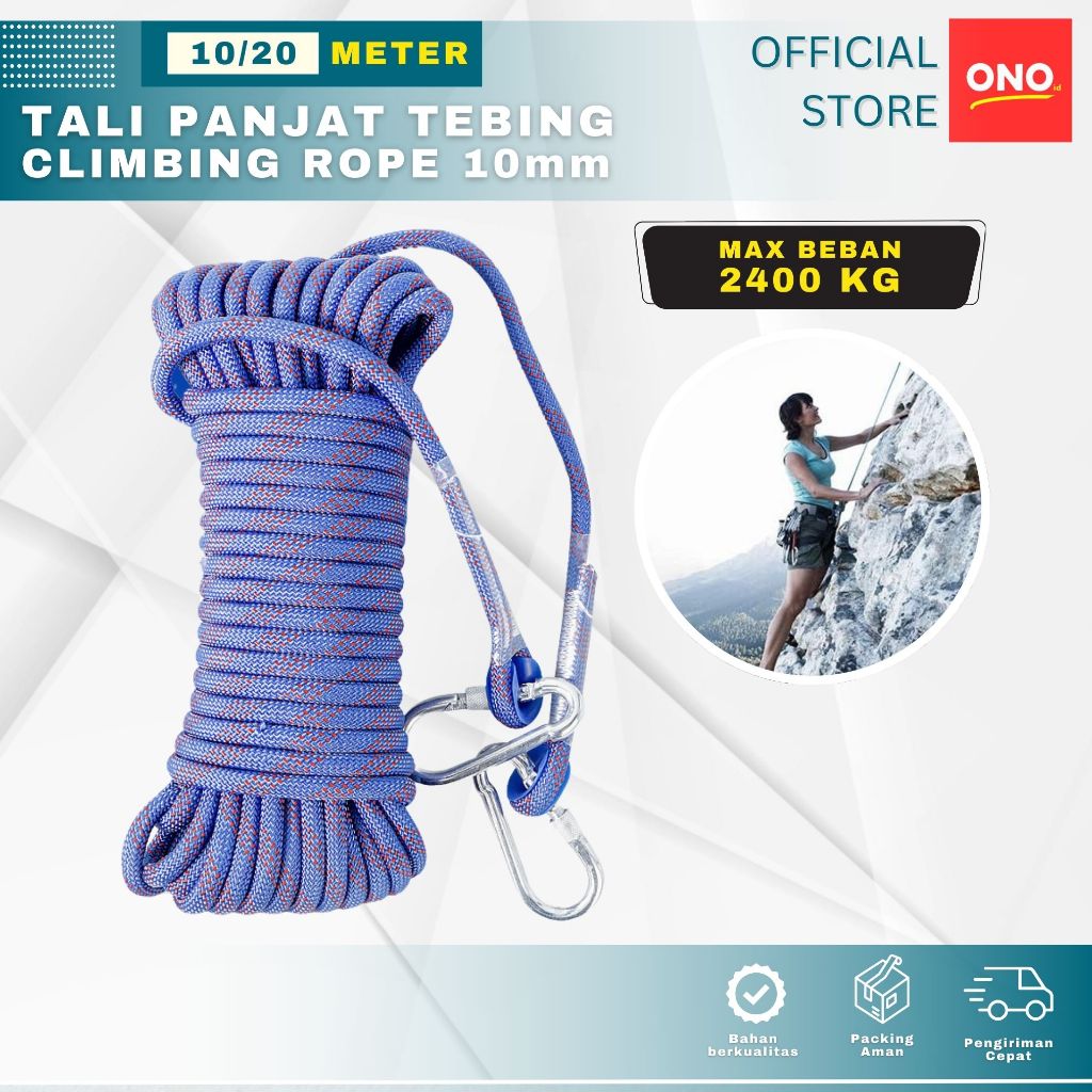 ONOID TALI PANJAT TEBING 10M 20M CLIMBING ROPE PARACORD STEEL BUCKLE CARABINER 10 20 METER 10MM