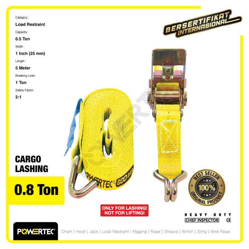 POWERTEC RATCHET TIE DOWN CARGO LASHING BELT 1" X 5M PENGIKAT BARANG