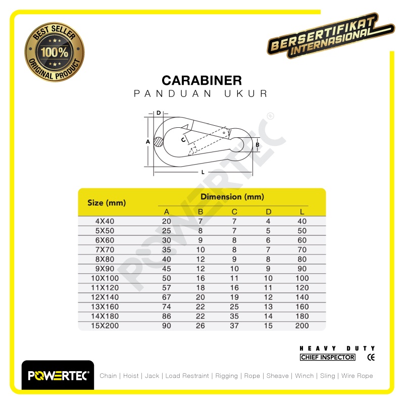 POWERTEC CARABINER / KARABINER GALVANIZED - 6MM