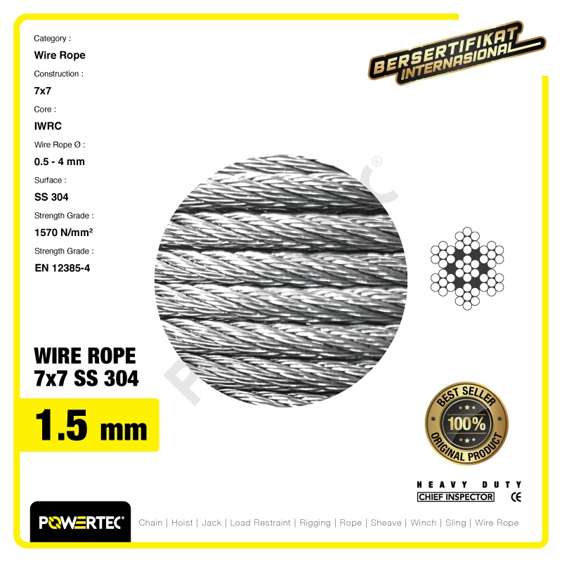 POWERTEC WIRE ROPE / KAWAT SELING BAJA 7X7 SS 304 1.5MM - 1 METER