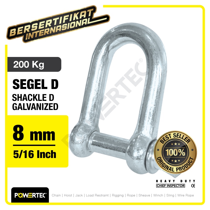 POWERTEC SHACKLE D GALVANIZED 8MM - 5/16" SEGEL DEE GALVANIS