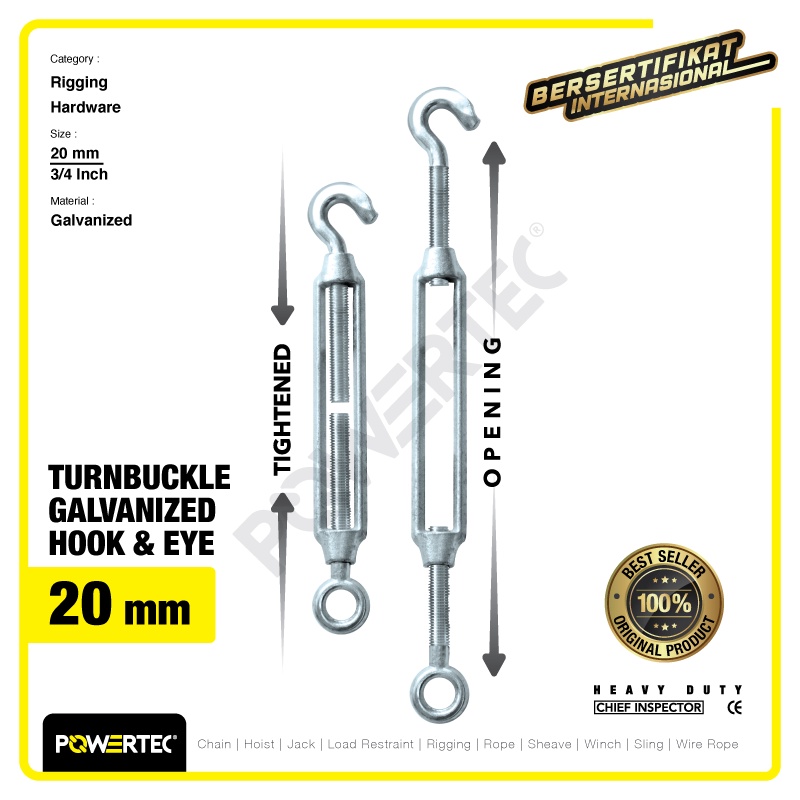 POWERTEC TURNBUCKLE / JARUM KERAS GALV HOOK & EYE M20 SPAN SKRUP