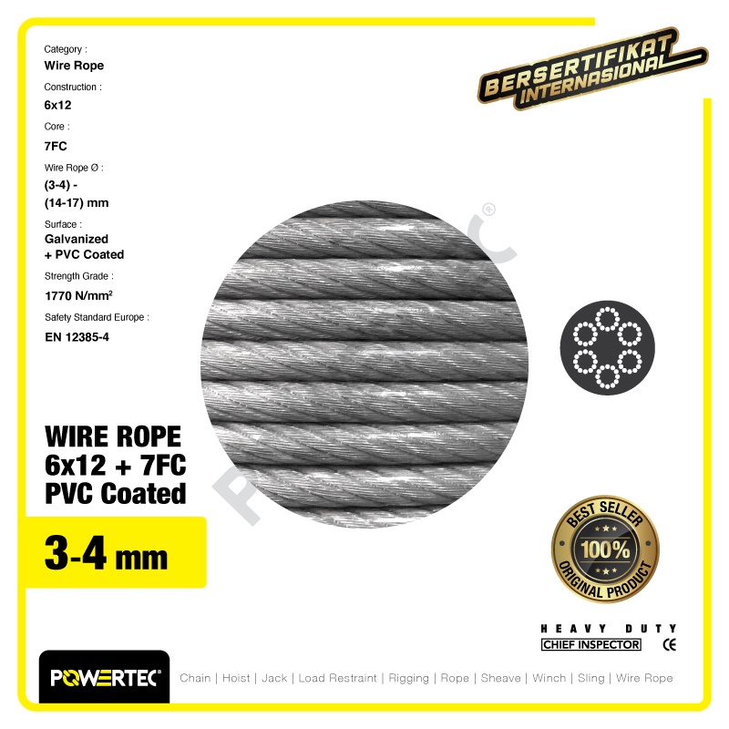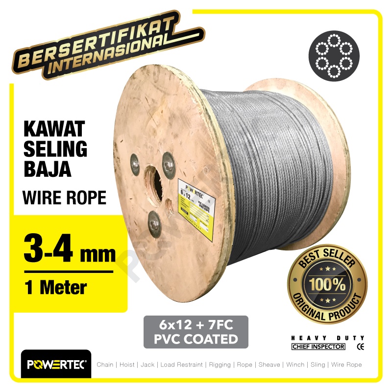 POWERTEC WIRE ROPE / KAWAT SELING BAJA 6X12 7FC PVC 3-4MM - 1 METER