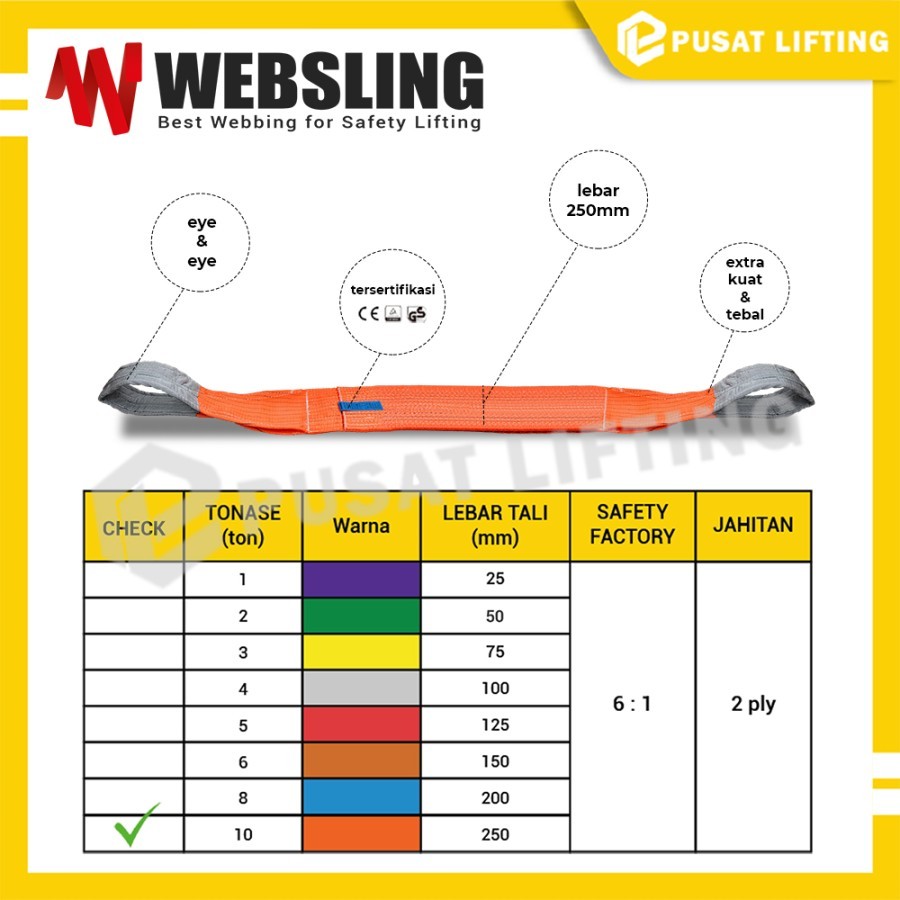 WEBBING SLING 10 TON 3 METER WEBSLING SLING BELT DOUBLE PLY POLYESTER