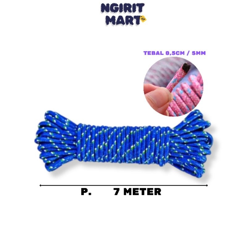 TALI PRUSIK/FLYSHEET 5 MM PANJANG 7 M NYLON SERBAGUNA | TALI KUAT JEMURAN OUTDOOR CAMPING PARACORD