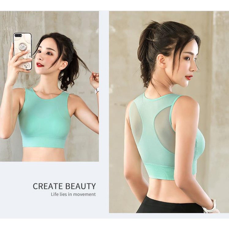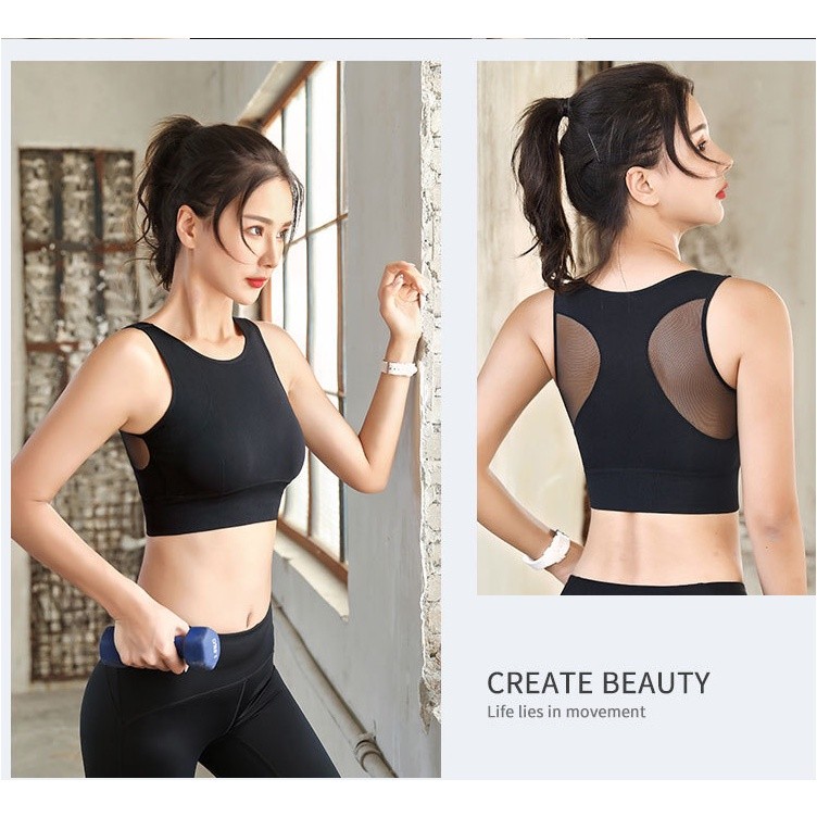 Bra Olahraga Push Up Sport Bra Yoga Tank Top Fitness BH Wanita Bernapas Jaring 8330