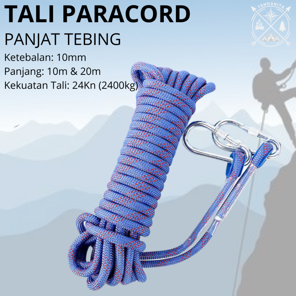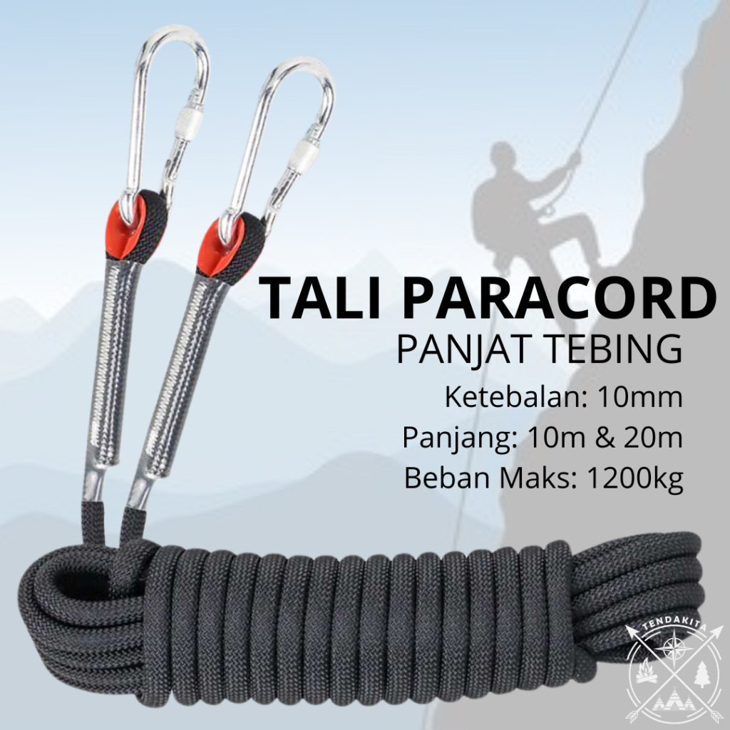 TAFFSPORT ANEKA TALI PARACORD PANJAT TEBING CLIMBING ROPE KARMANTEL RAPPELLING TAMBANG BUCKLE STEEL