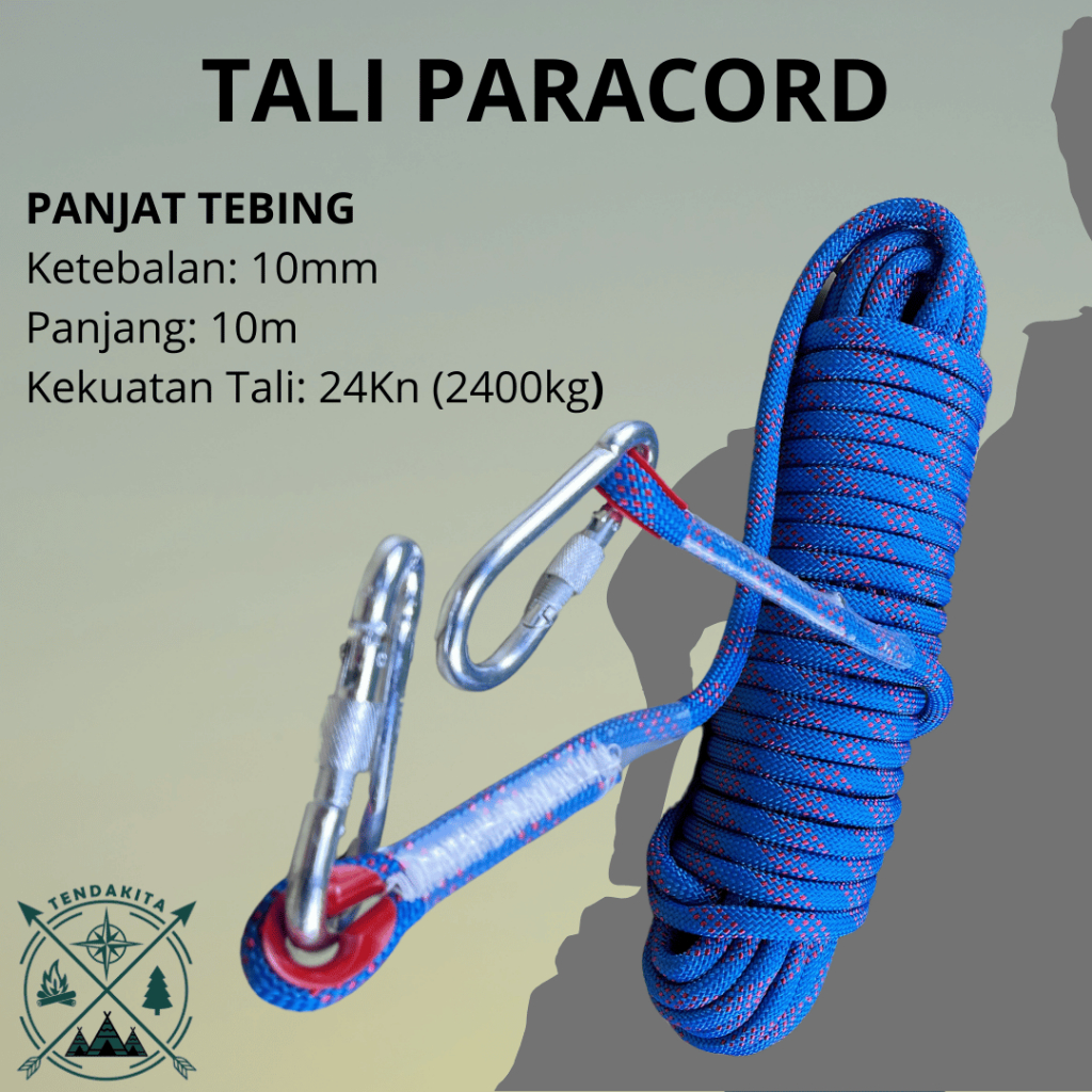 -TAFFSPORT TALI PARACORD PANJAT TEBING CLIMBING ROPE STEEL TALI TAMBANG CAMPING TALI KARMANTEL 24KN
