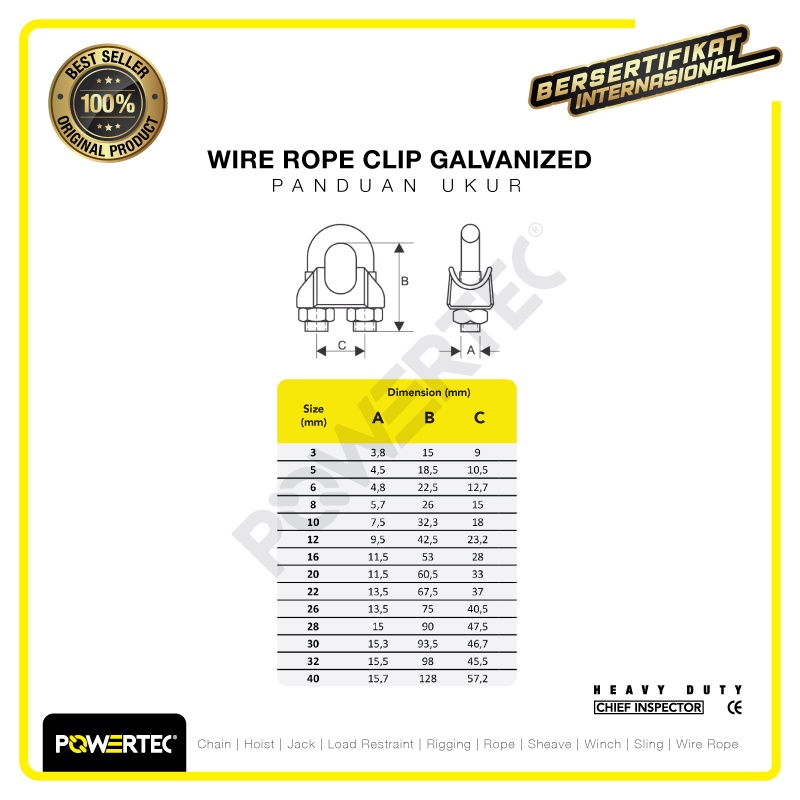 POWERTEC WIRE ROPE CLIP / KLEM SELING KUKU MACAN GALV 8MM - 5/16"