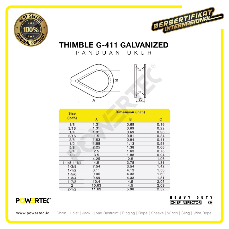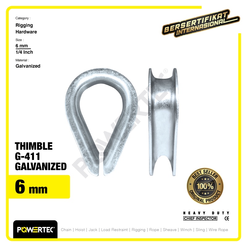 POWERTEC THIMBLE WIRE ROPE KAUSEN SLING G-411 6MM - 1/4" GALVANIZED