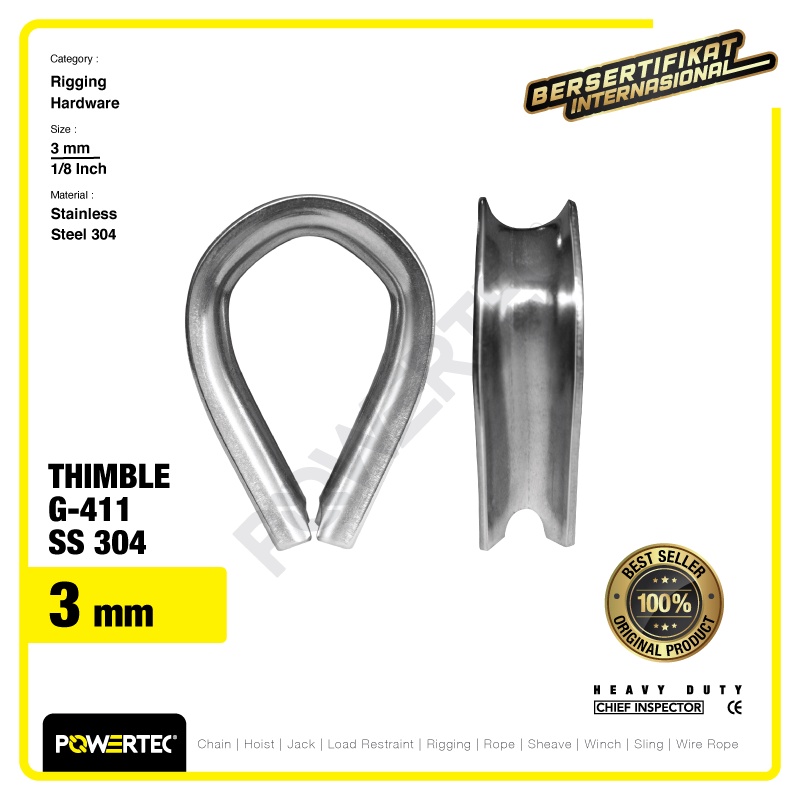 POWERTEC THIMBLE WIRE ROPE KAUSEN SLING STAINLESS STEEL 3MM - 1/8"
