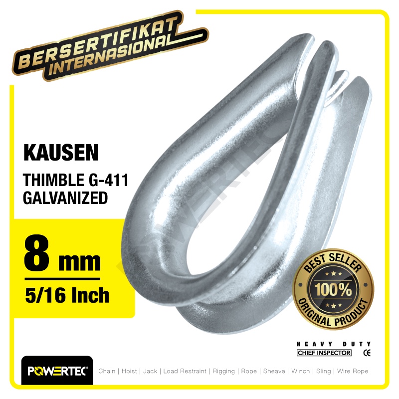 POWERTEC THIMBLE WIRE ROPE KAUSEN SLING G-411 8MM - 5/16" GALVANIZED