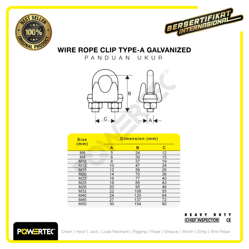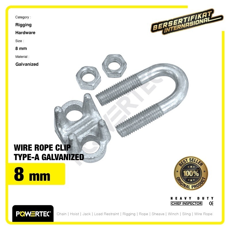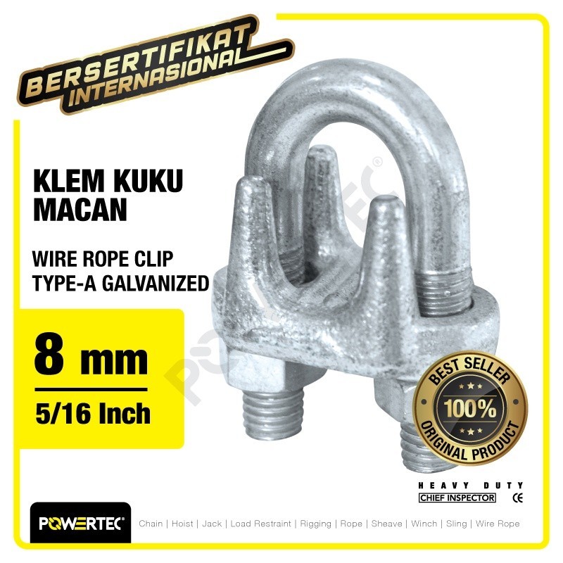 POWERTEC WIRE ROPE CLIP / KLEM SELING KUKU MACAN GALV 8MM BULLDOG