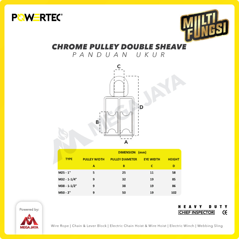 POWERTEC SMALL PULLEY CHROME KATROL KEREKAN 38MM 1-1/2" - 2 SHEAVE