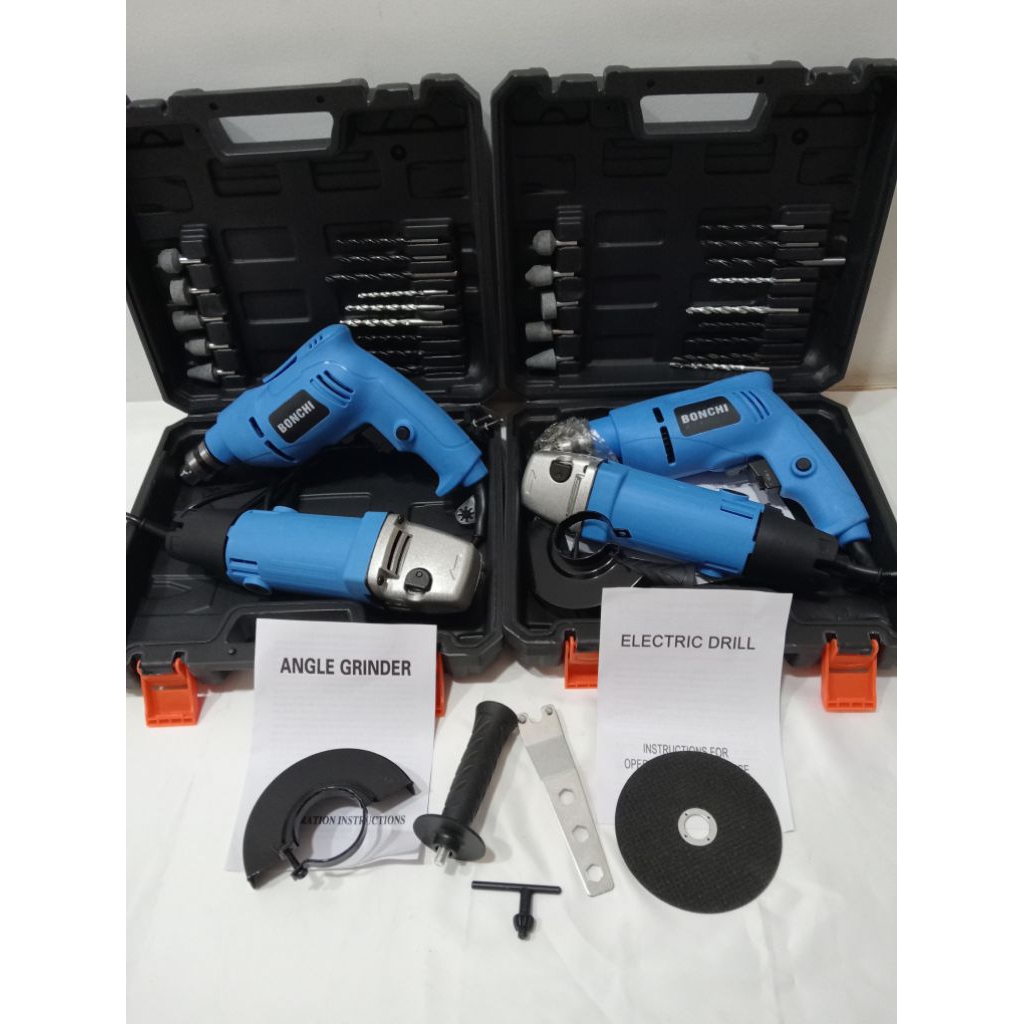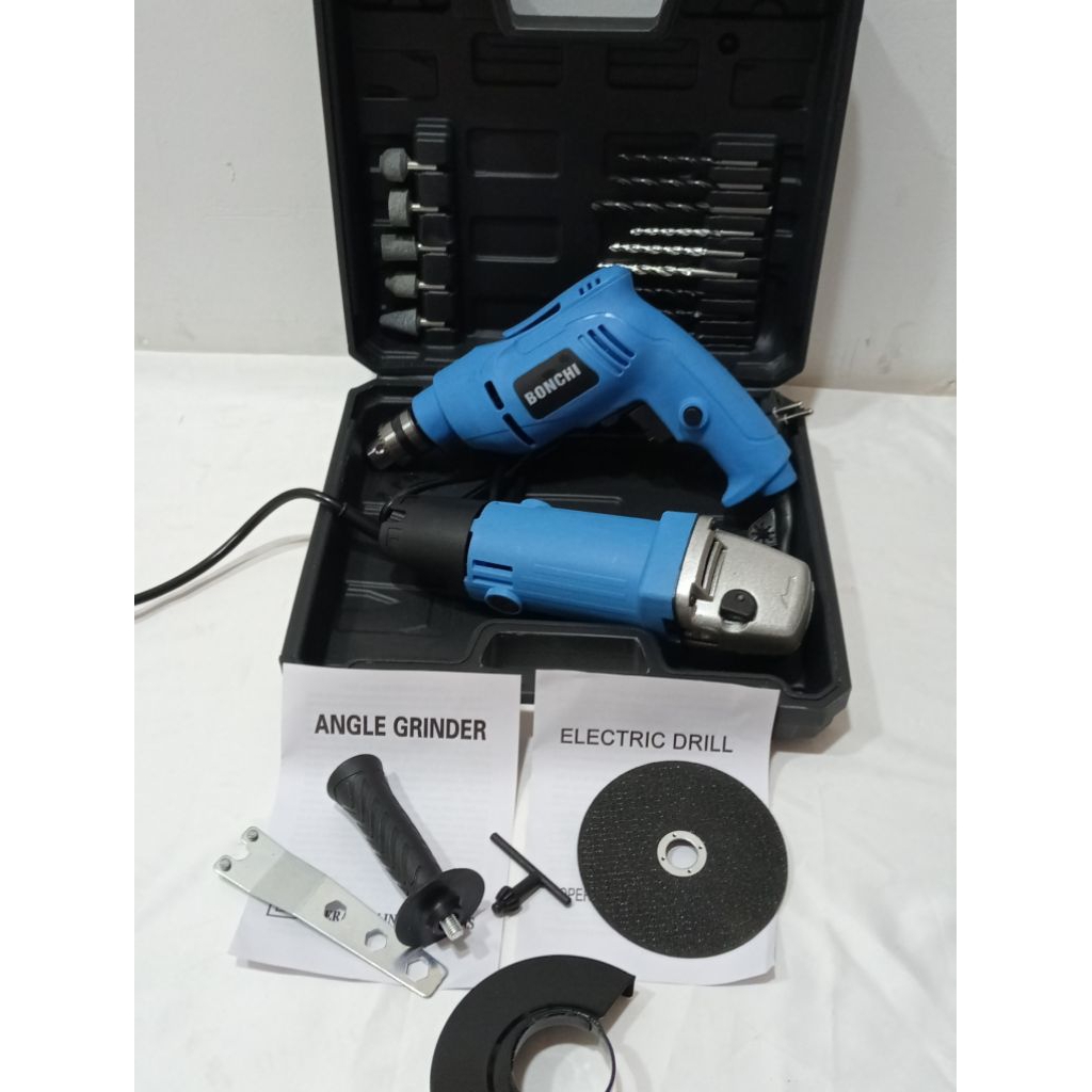 MURAH BONCHI BOR DAN GERINDA MESIN BOR LISTRIK GERINDA DAN BOR 10MM DAPAT BOX PAKET LENGKAP
