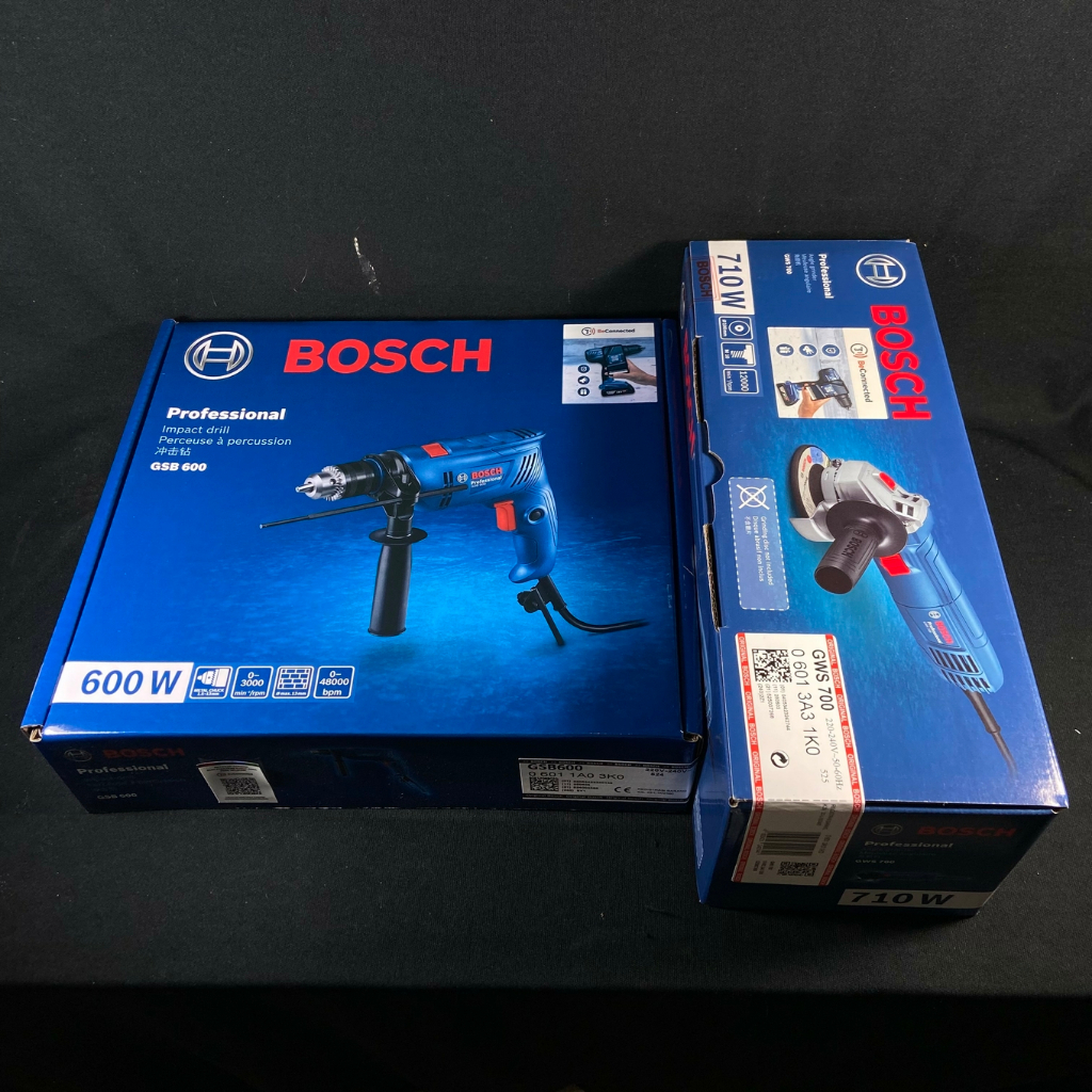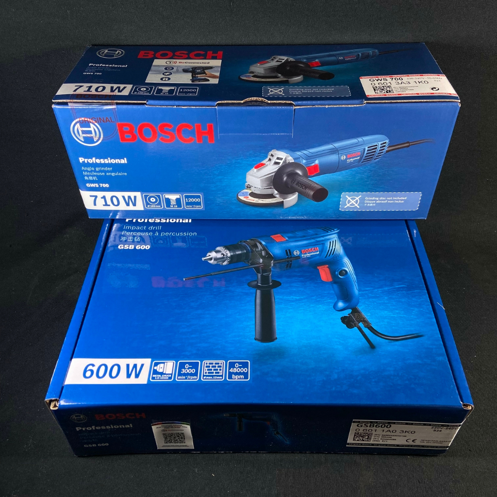 BOSCH PAKET TUKANG GERINDA GWS 700 ANGLE GRINDER 4 INCI X MESIN BOR BETON GSB 600 IMPACT DRILL 13 MM