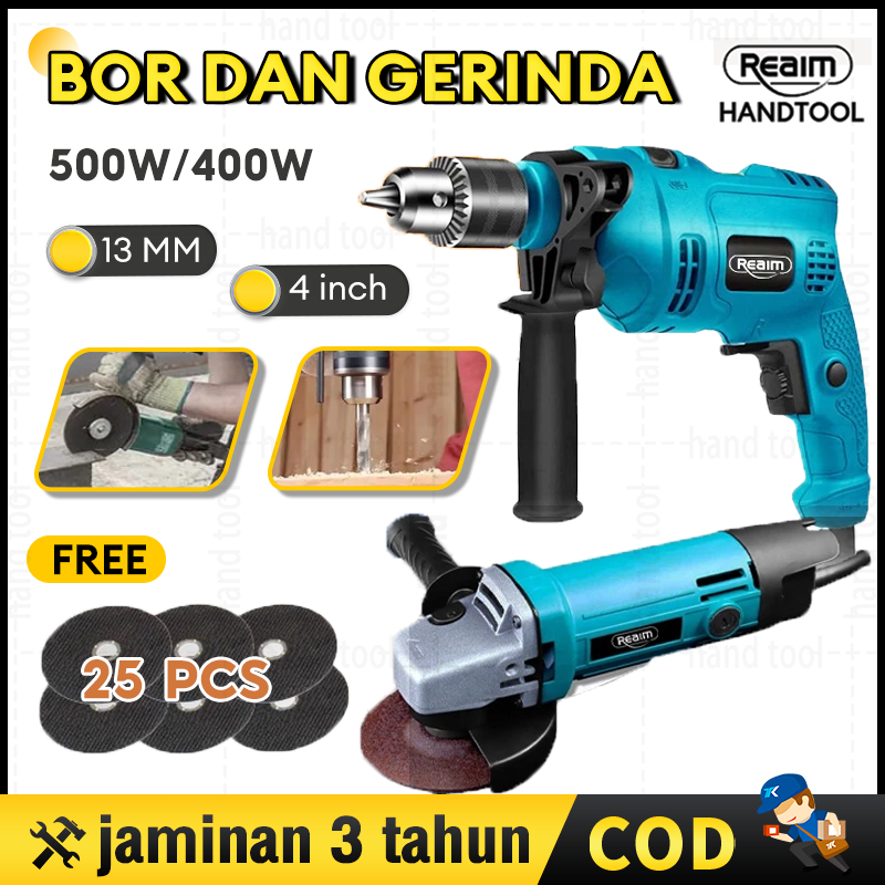 REAIM MESIN GERINDA TANGAN 400W DAN MESIN BOR LISTRIK 13MM 500W SET GERINDA DAN BOR PAKET BOR GERINDA FREE KOPER GERINDA