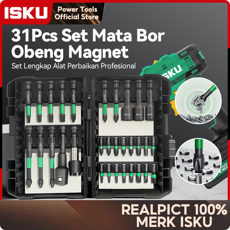 ISKU 31PCS SET PERKAKAS MULTIFUNGSI MATA BOR & OBENG MAGNET - ALAT PERBAIKAN PROFESIONAL UNTUK TUKANG TEKNISI, BENGKEL,