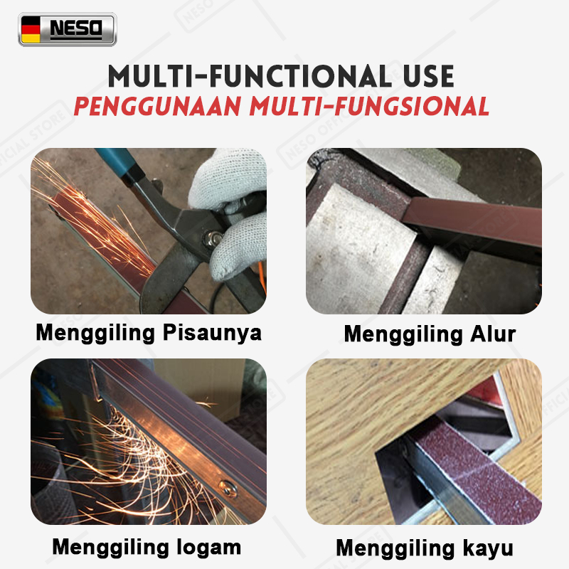 NESO MINI DIY MESIN GILING PEMOLES SABUK AMPELAS PENGGILING SUDUT SABUK PASIR 80/400 UNTUK PENGGILING SUDUT ADAPTOR M10