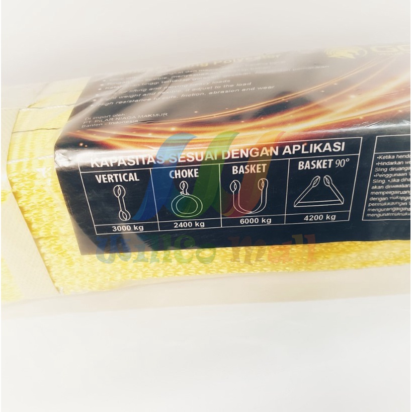 WEBBING SLING POLYESTER TALI PENGANGKAT PENARIK PENGIKAT 3TON X 6M