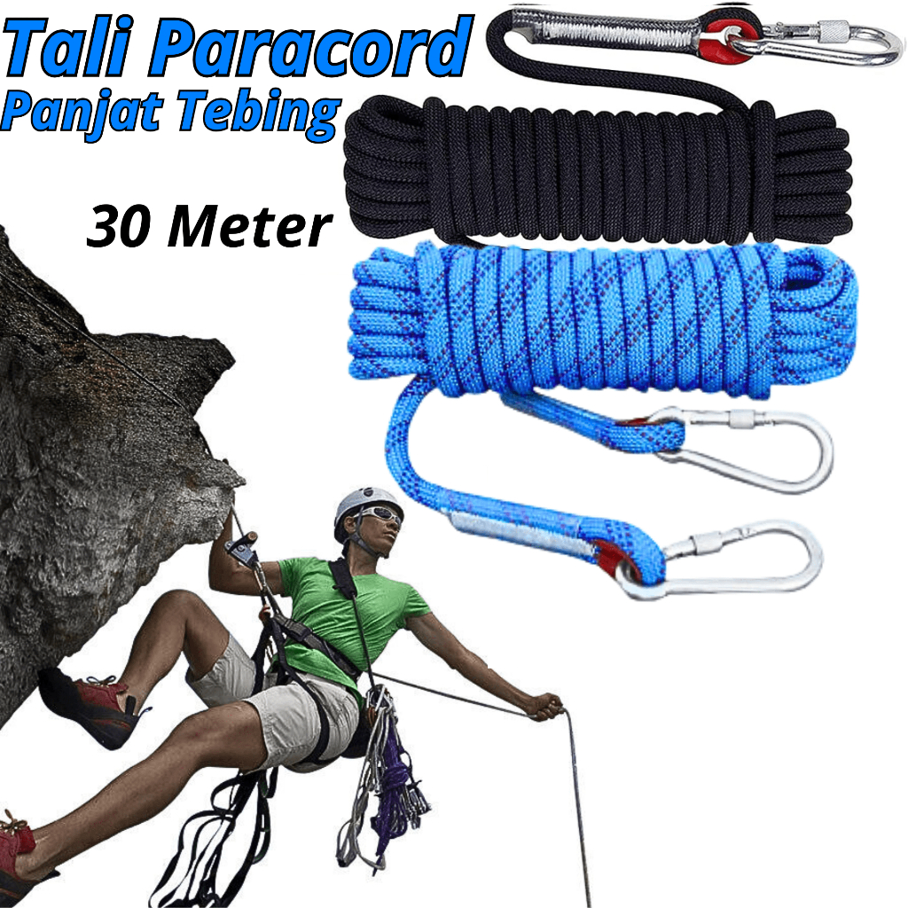 TAFFSPORT TALI PARACORD PANJAT TEBING UKURAN 10MM 24 KN CLIMBING ROPE STEEL BUCKLE 30 METER