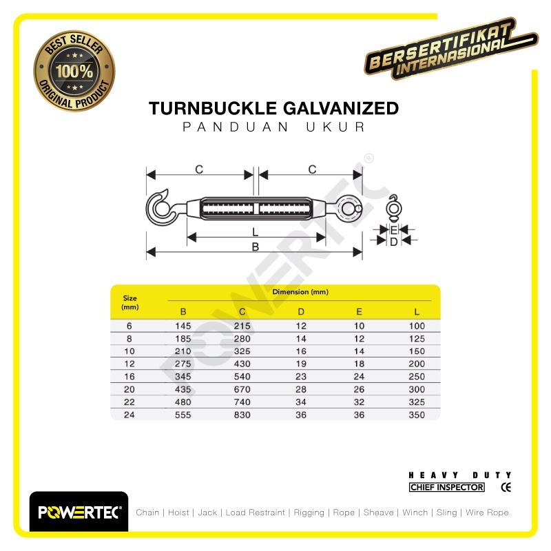 POWERTEC TURNBUCKLE / JARUM KERAS GALV HOOK & EYE M10 SPAN SKRUP