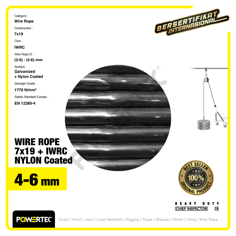 POWERTEC SELING FITNESS / HOME GYM CABLE 7X19 IWRC 4-6MM - 1 METER