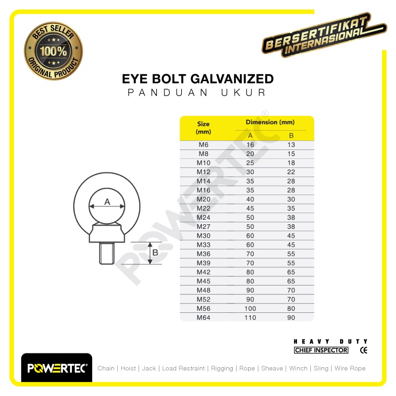 POWERTEC EYE BOLT / MATA BAUT GALVANIZED M8