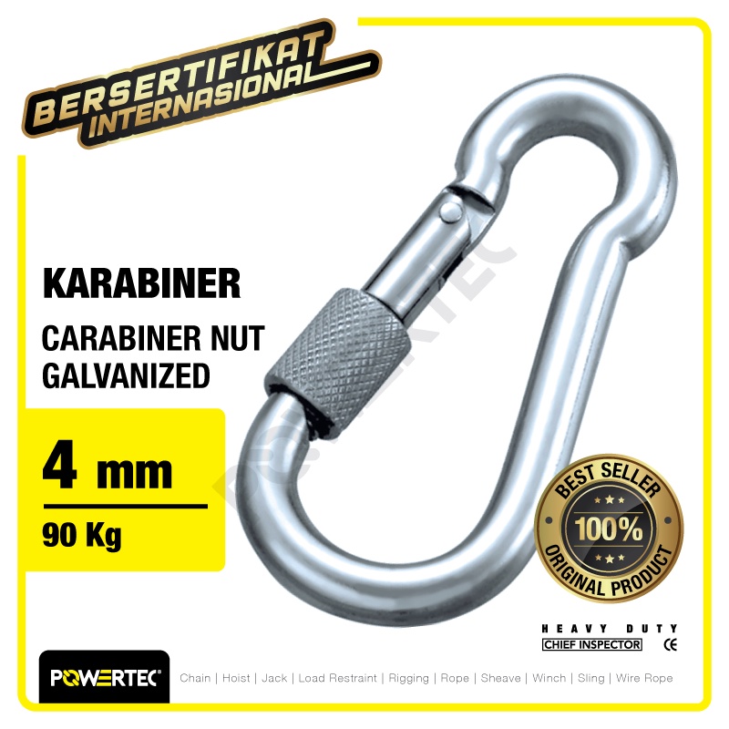 POWERTEC CARABINER / KARABINER NUT GALVANIZED 4 MM
