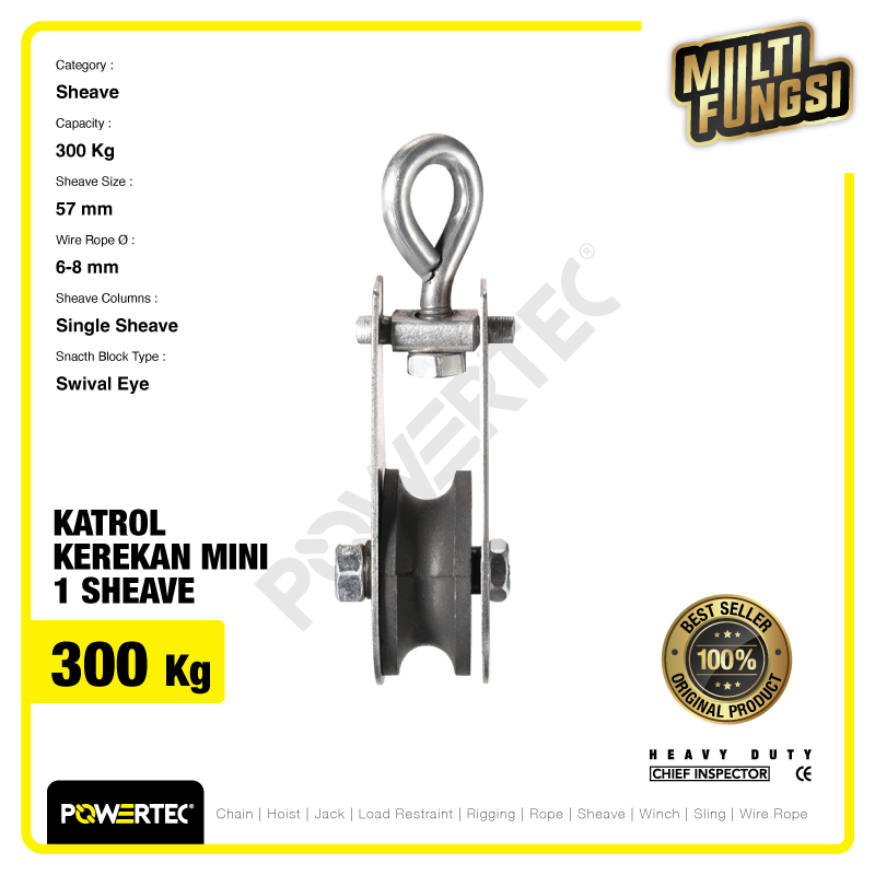 POWERTEC MINI PULLEY KATROL KEREKAN 300KG 12MM - 1 SHEAVE