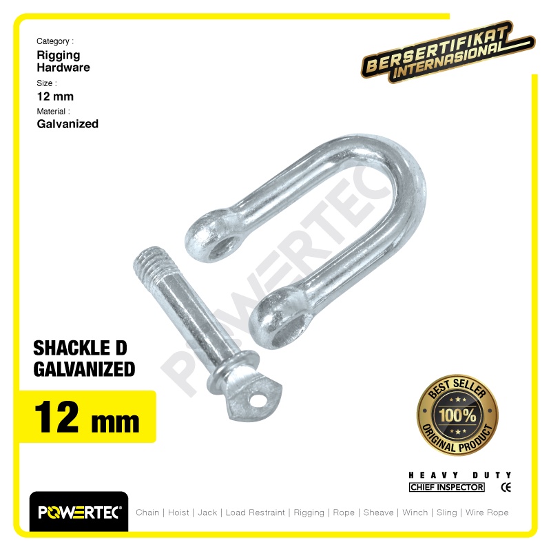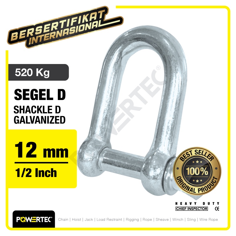 POWERTEC SHACKLE D GALVANIZED 12MM - 1/2" SEGEL DEE GALVANIS