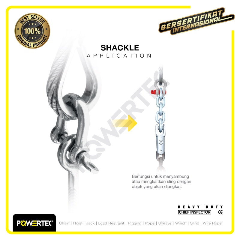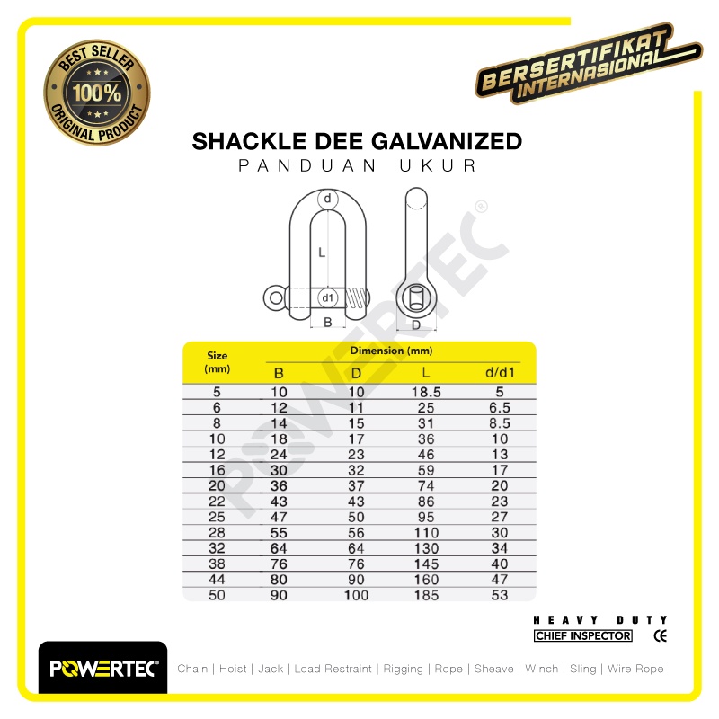 POWERTEC SHACKLE D GALVANIZED 10MM - 3/8" SEGEL DEE GALVANIS
