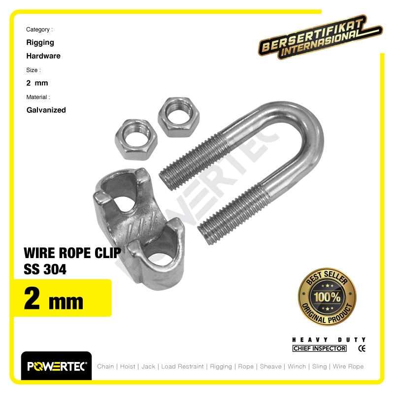 POWERTEC WIRE ROPE CLIP / KLEM SELING KUKU MACAN SS 304 2MM