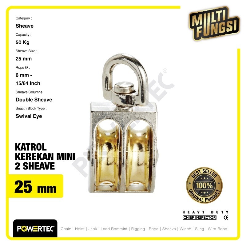 POWERTEC SMALL PULLEY CHROME KATROL KEREKAN 25MM 1" - 2 SHEAVE