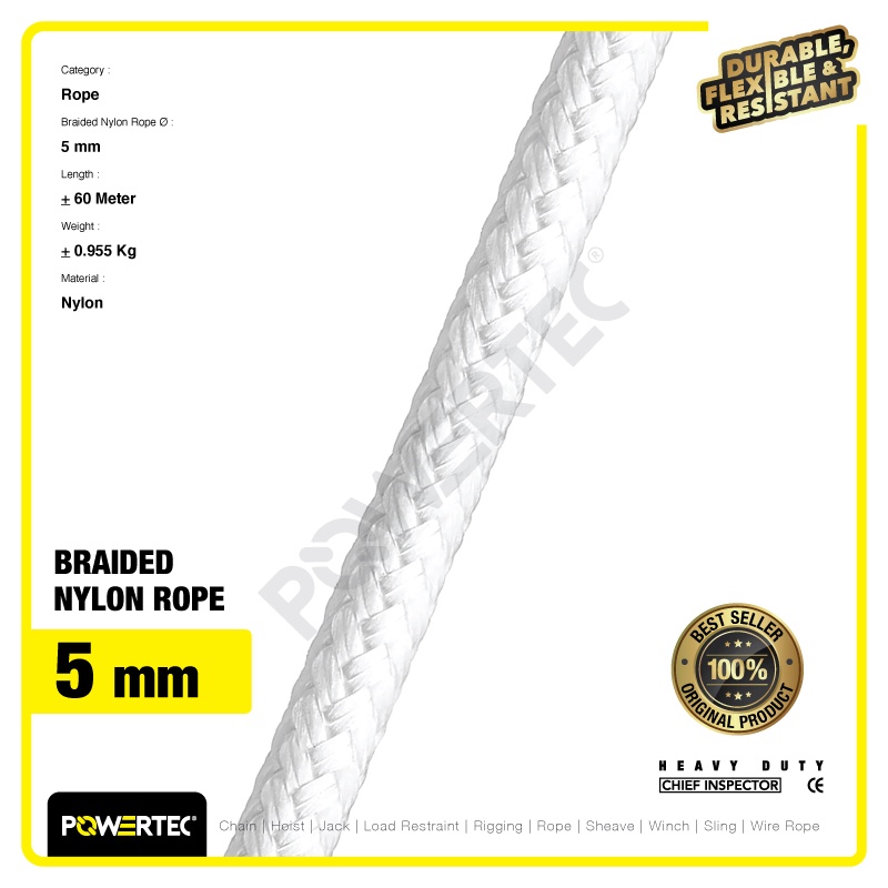 POWERTEC TALI NILON KEPANG 5MM X 60M BRAIDED NYLON ROPE