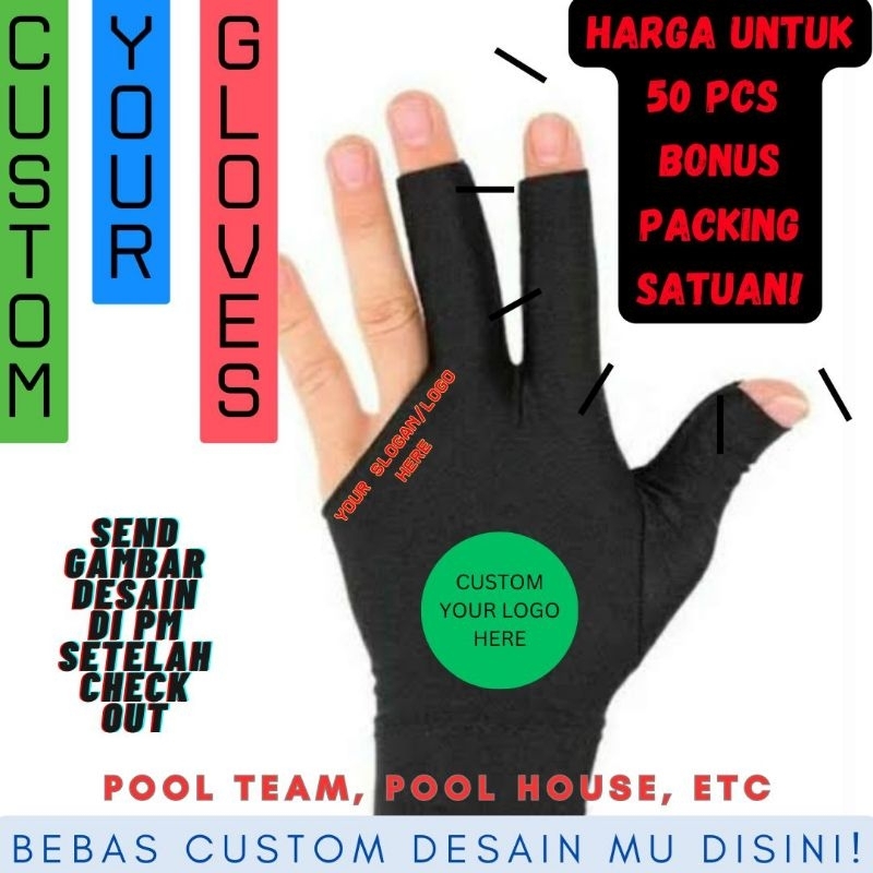 50 PCS - TERMURAH CUSTOM GLOVE BILLIARD SARUNG TANGAN MURAH SABLON