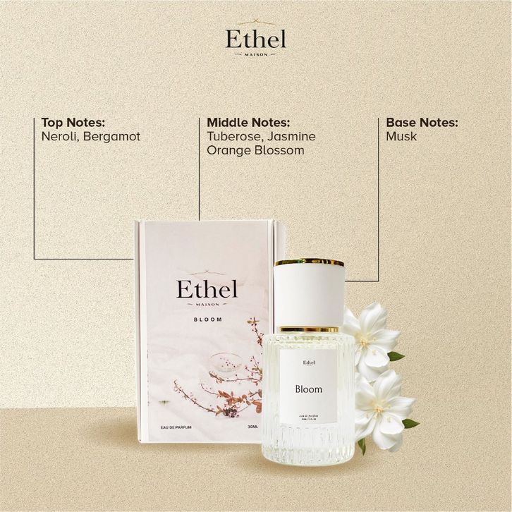 Parfum Ethel Maison BLOOM Netto 30 ml 30ml EDP Aroma Jasmine dan Bergamot Wangi Tahan Lama Parfum Original