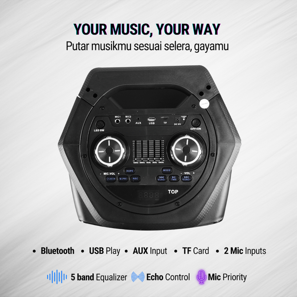 Asatron Ultimate Dual 10 Inch Bluetooth Wooden Box Party Speaker with 2 Wireless Mic