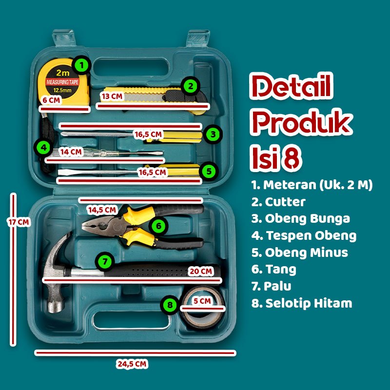 [ABS] TOOL KIT PERKAKAS ALAT REPAIRING MULTI SET PALU METERAN OBENG TANG CUTTER LENGKAP 8 DAN 7 PCS ALAT RUMAH TANGGA OB