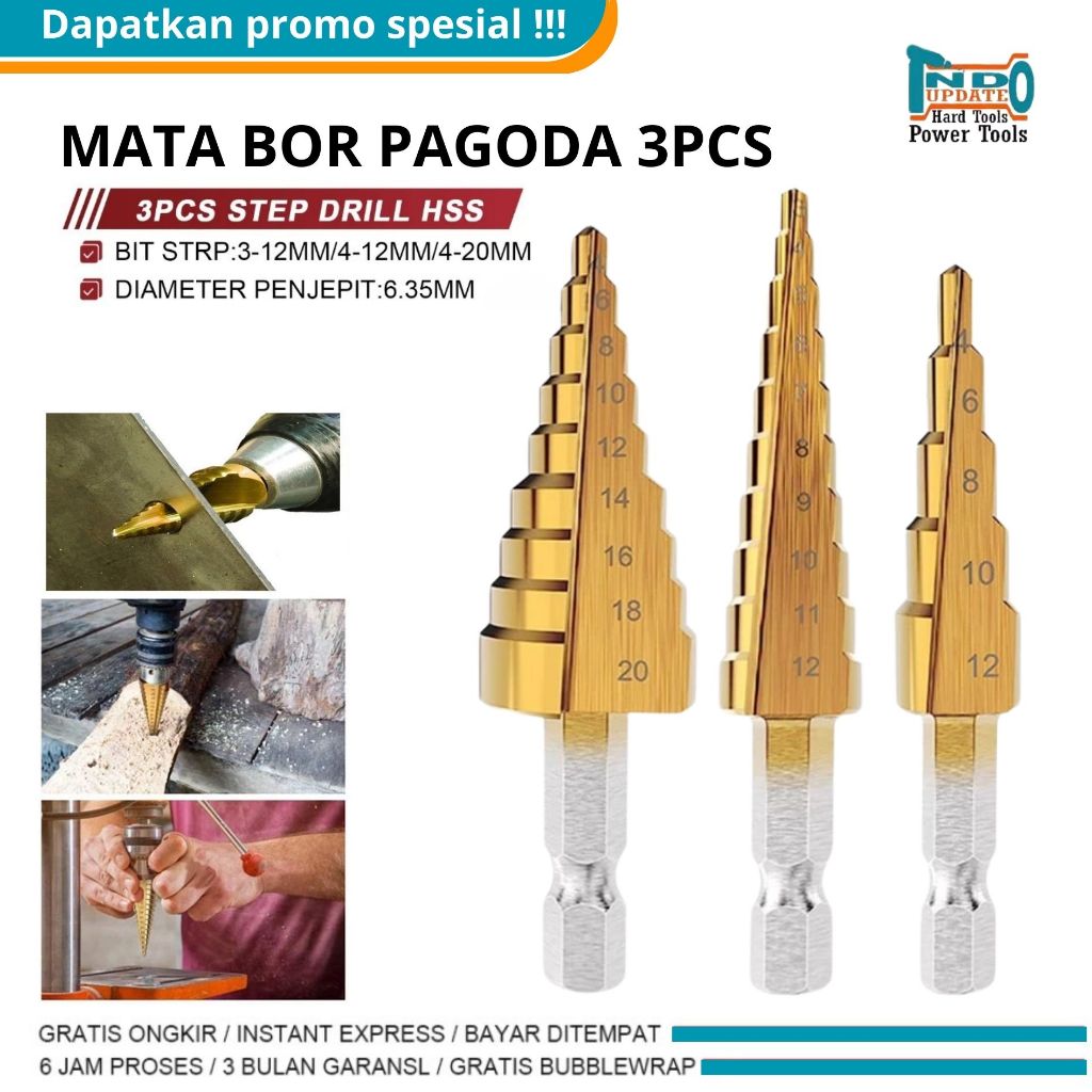 MATA BOR 3 PCS STEP DRILL DRIL HSS MATA BOR BESI KERUCUT PAGODA CONE DRILL H0LE SAW MULTI SET- 3 PCS