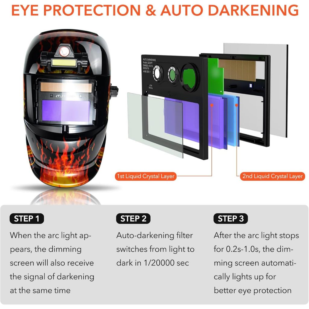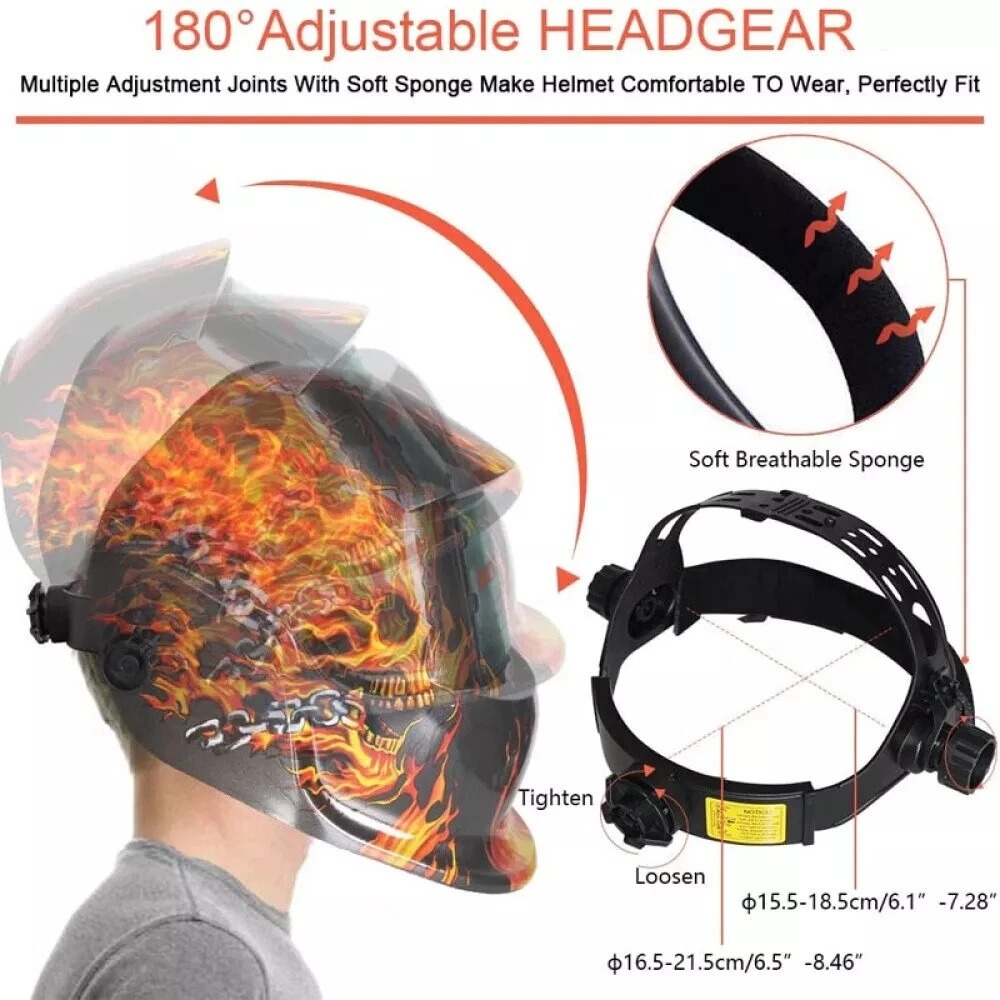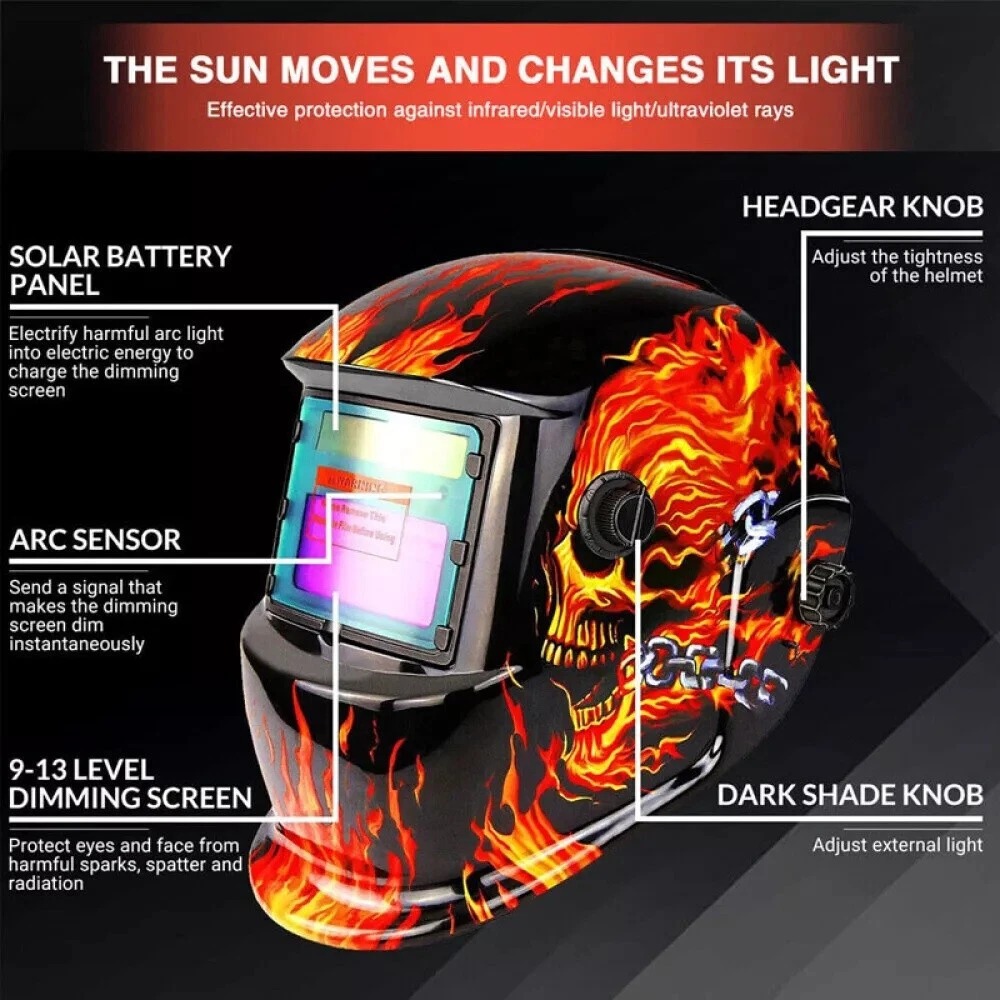 HELM KEDOK LAS FULL FACE OTOTMATIS GELAP TERANG AUTO DARKENING SOLAR VARIAN LENGKAP + SENTER LED