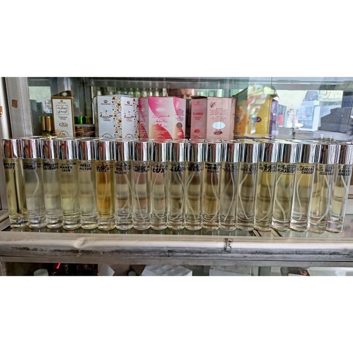 Aigner blue, Angel heart, Anna sui dream, Avril, Baccarat, Black opium, Britney fantasi, Buble gum, Bulgari aqua, Bulgari extreme, Bulgari o.cristal, Cherry blossom, D&g l'imperatrice, D&g light blue, Davidof man, Dior sauvage, Dunhil blue, Escada cherry, Escada sexy g, Eternity man, Green tea, Gucci gardenia, Harajuku, Hugo bos energize, Incanto shine, Jaguar blue, Jlo still, Kenzo bali, Kopi bali, Lainnya, Lovely, Lux, Maher zein, Melon, Nagita Slavina, Olla ramlan, Paris hilton, Polo sport, Raffi ahmad, Sarah j.parker, Selena gomes, Soft, Taylor swift, Vanilla, Victoria bomshel, Victoria romantic, Victoria scandalous, Zara gardenia, bath and body works