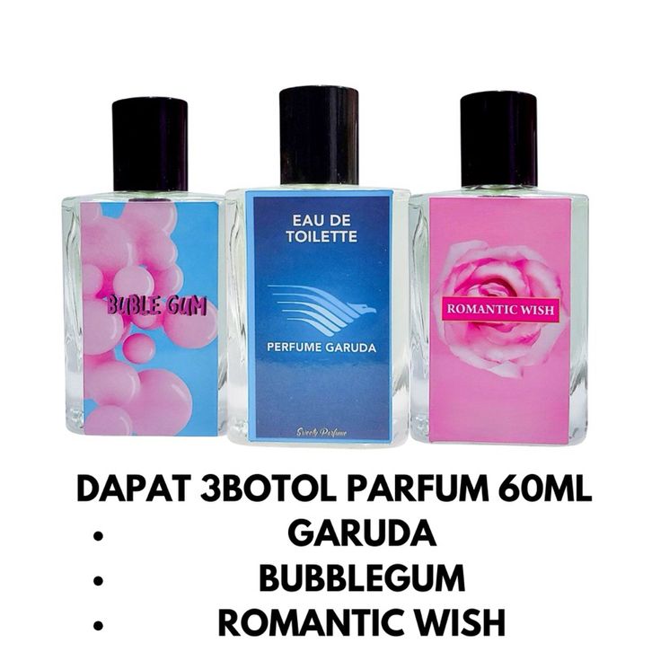 PROMO PAKET 3BOTOL | Parfum Bundling Bubblegum - Garuda - Roman Wish | Parfum Pria Wanita 60ml ORIGINAL PRODUK