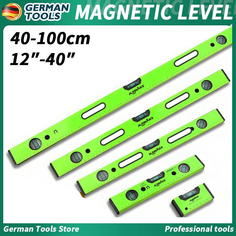 GERMAN TOOLS LEVEL MAGNETIK WATERPASS ALUMINIUM WATERPAS MAGNETIC AKURAT PERKAKAS 40/60/80/100CM